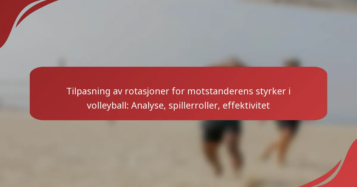 Å tilpasse rotasjoner i volleyball for å motvirke motstandernes styrker er en strategisk tilnærming som innebærer nøye analyse av deres evner og justering av spillerposisjoner deretter. Ved å vurdere motstanderens prestasjoner og implementere taktiske endringer, kan trenere optimalisere spillerroller for å utnytte svakheter og forbedre den totale lageffektiviteten.