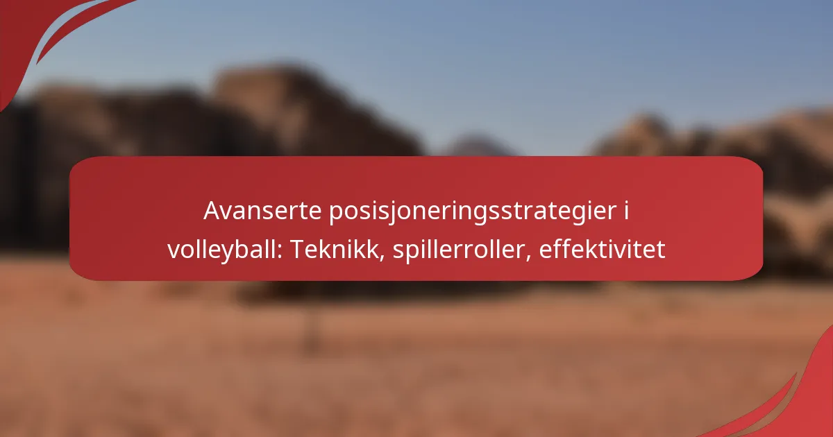 Avanserte posisjoneringsstrategier i volleyball fokuserer på den taktiske plasseringen av spillere for å øke både individuell og lagprestasjon. Ved å forstå spesifikke spillerroller og bruke effektive teknikker, kan lag forbedre sitt scoringspotensial og defensive styrke, noe som til slutt fører til større suksess på banen.