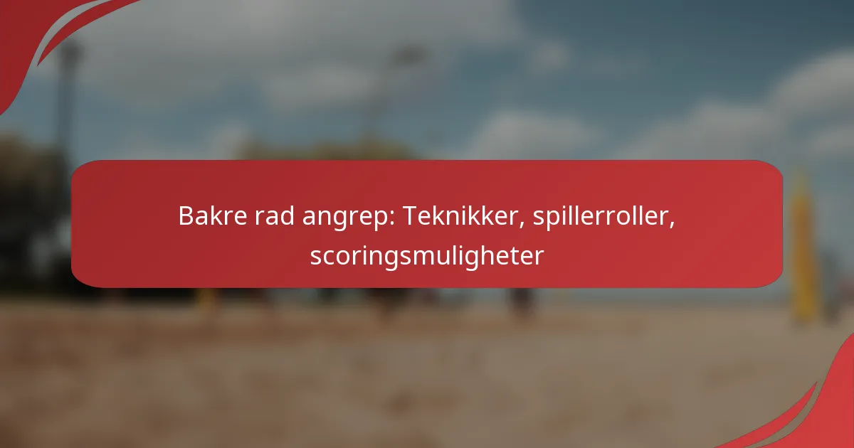 Bakre angrep er en dynamisk offensiv strategi der spillere utfører kraftige treff fra baklinjen, ved å bruke teknikker som presis fotarbeid og timing. Denne tilnærmingen forbedrer ikke bare scoringspotensialet, men understreker også viktigheten av spillerroller i overgangen fra forsvar til angrep, og fremmer effektiv kommunikasjon med lagkamerater i frontlinjen. Ved å utnytte ulike scoringsalternativer kan lag strategisk utnytte defensive svakheter for å sikre poeng og forbedre sin samlede ytelse.