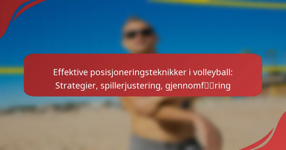 Effektive posisjoneringsteknikker i volleyball er avgjørende for å forbedre lagets ytelse og oppnå suksess på banen. Ved å strategisk plassere spillerne basert på deres roller og formasjoner, kan lagene optimalisere sine offensive og defensive evner. Å forstå disse teknikkene gjør det mulig for spillerne å forutsi spill og utføre bevegelser med presisjon, noe som sikrer omfattende dekning og koordinering under kampene.