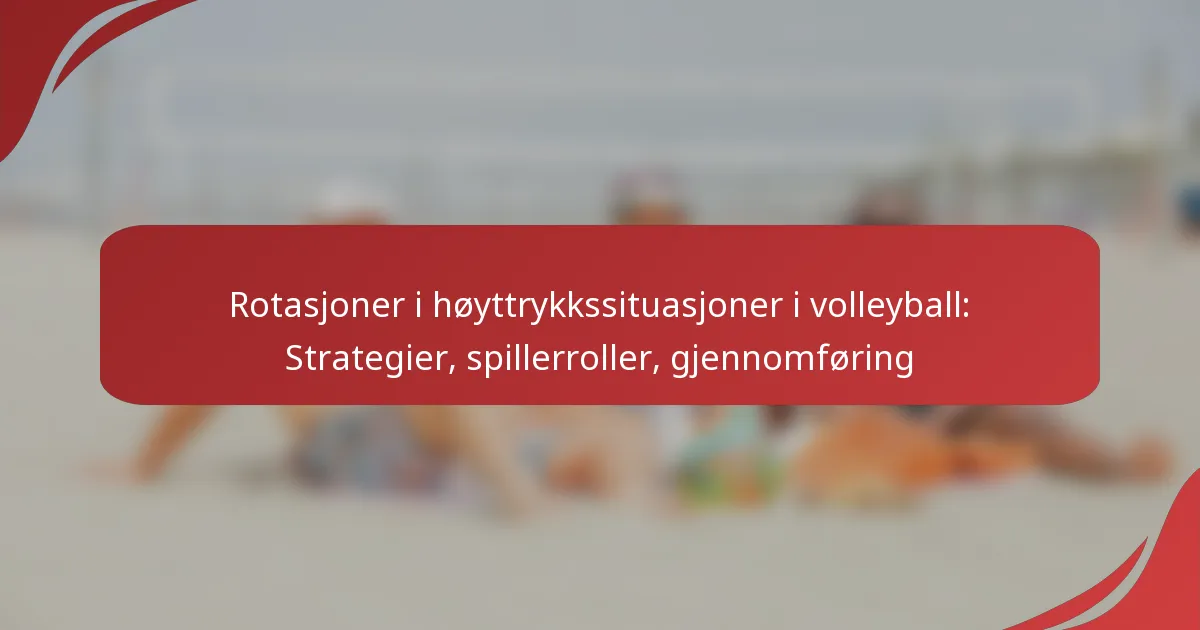 I høytrykks volleyballsituasjoner er effektive spillerrotasjoner avgjørende for å opprettholde lagets ytelse og tilpasse seg de raske dynamikkene i spillet. Ved å forstå individuelle roller, bruke strategiske timeouts og fremme klar kommunikasjon, kan lagene utføre sine rotasjoner med presisjon, og sikre at de reagerer dyktig på utfordringer på banen.