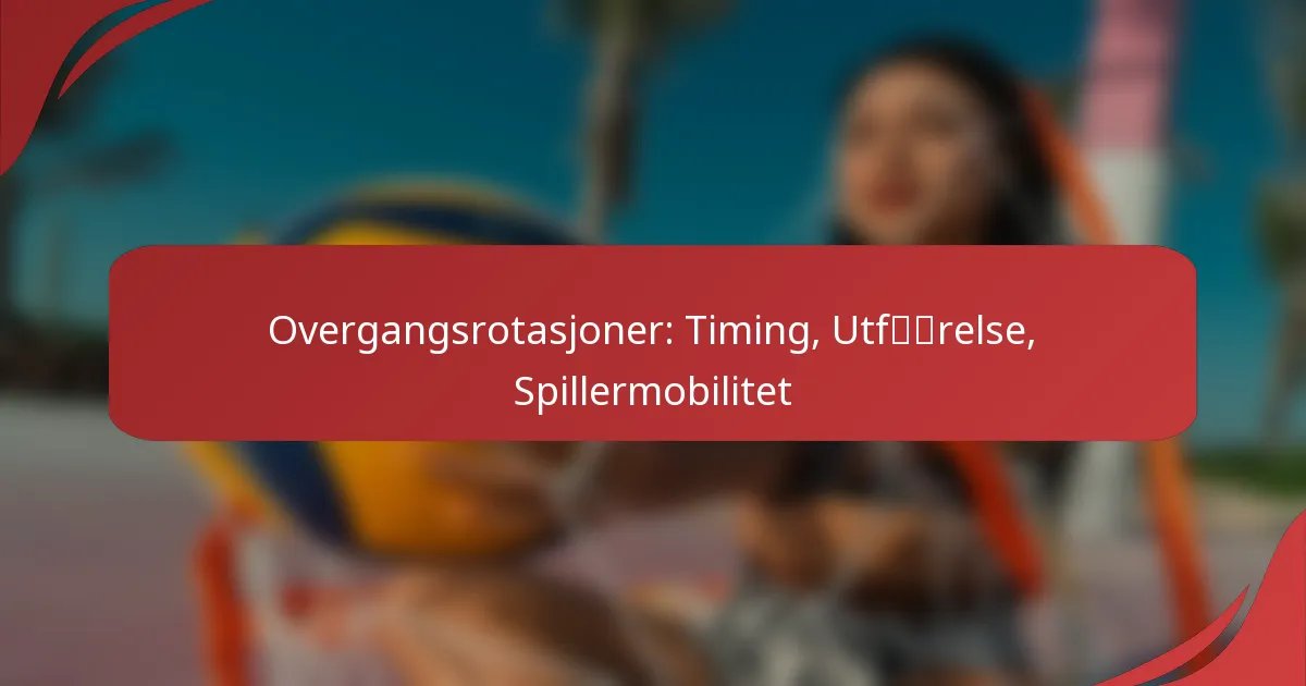 Overgangsrotasjoner i sport er essensielle for å sikre at spillerne effektivt skifter mellom offensive og defensive roller under raskt spill. Riktig timing og utførelse av disse rotasjonene bidrar til å opprettholde lagstrukturen, slik at spillerne kan utnytte scoringsmuligheter samtidig som de minimerer sårbarheter. Klar kommunikasjon og definerte roller er avgjørende for suksess, noe som gjør det mulig for lag å tilpasse seg raskt til motstanderne og opprettholde kontrollen over spillet.